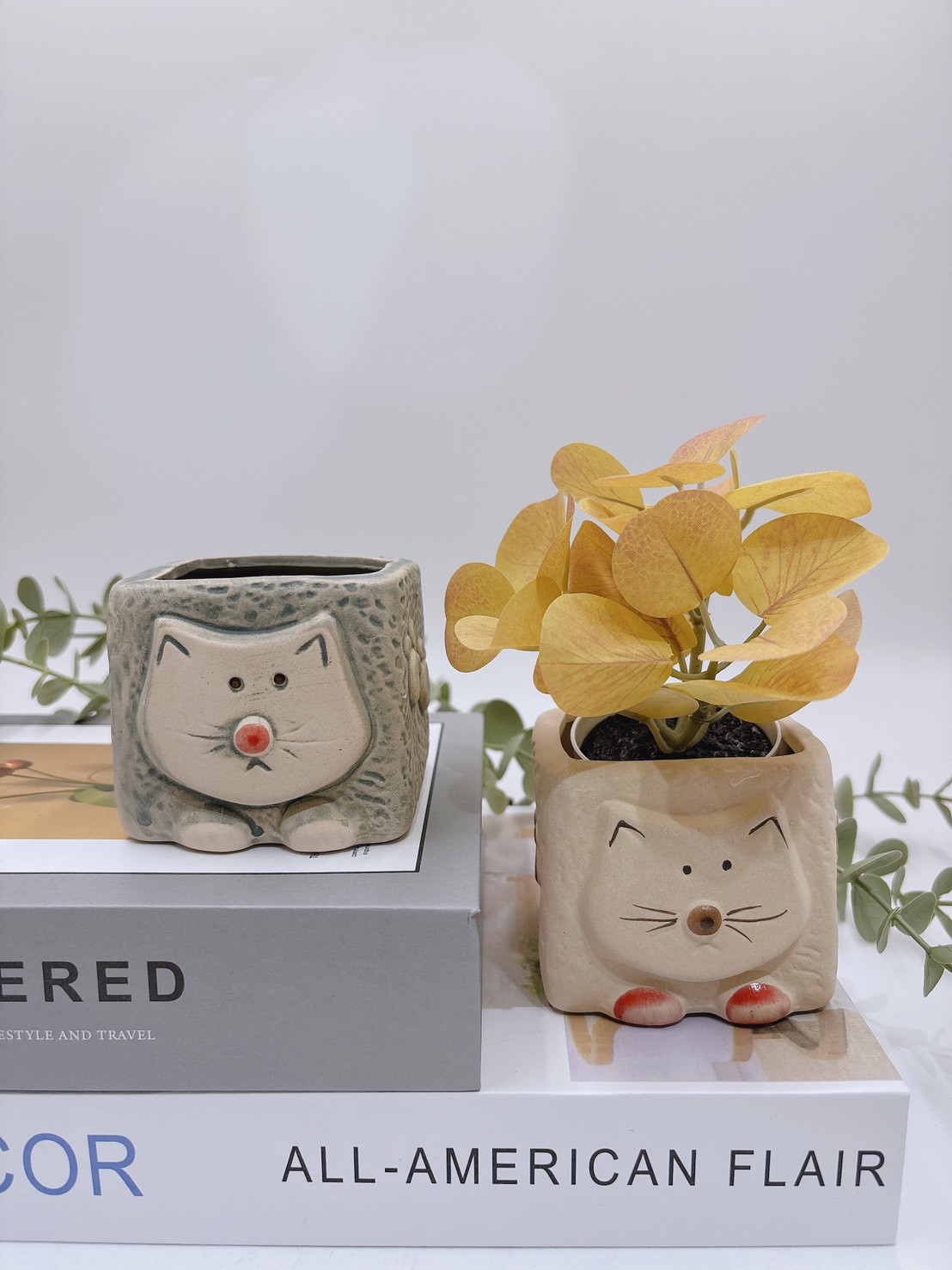 【滿額免運】貓咪盆 造型盆 可愛盆 生活家飾 陶盆 蘭花盆 多肉花盆 仙人掌花盆 陶瓷花盆 盆栽 盆器 綜一園藝