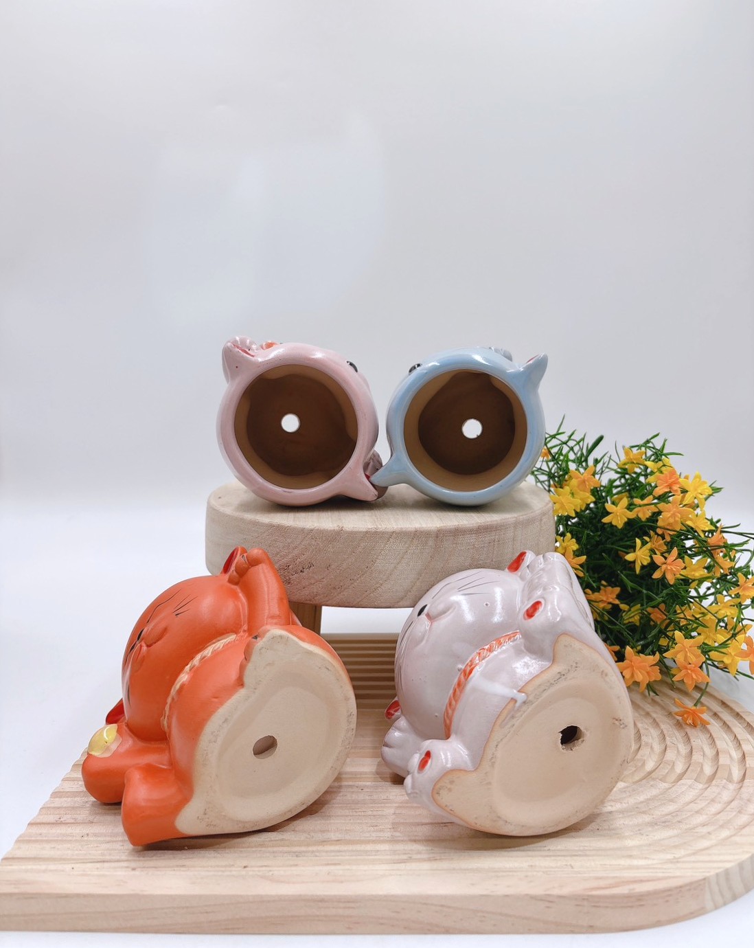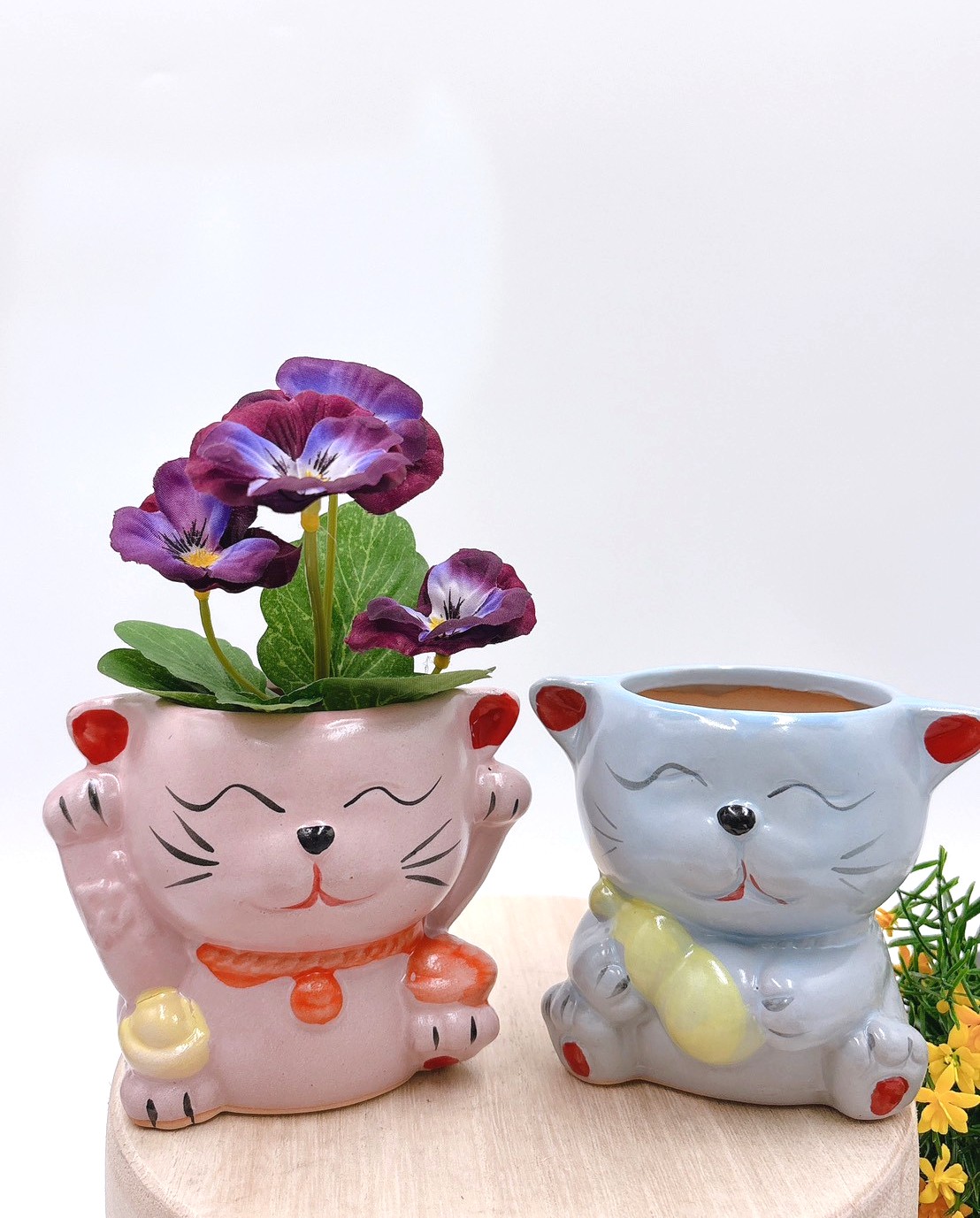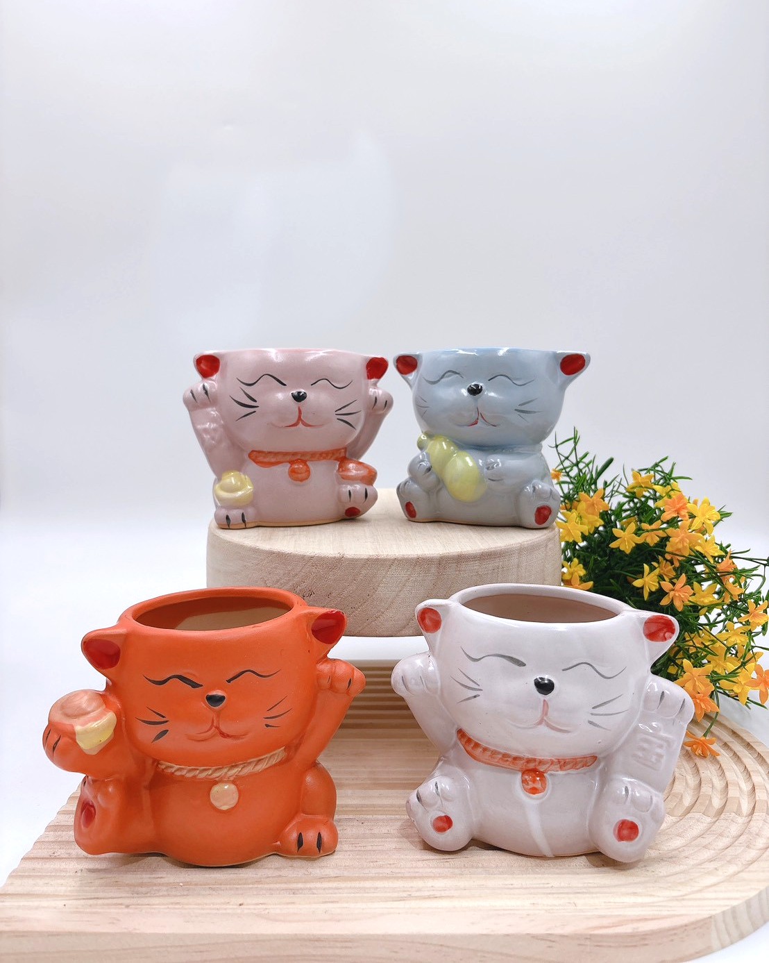 【滿額免運】潦草招財貓 招財貓 生活家飾 陶盆 蘭花盆 多肉花盆 仙人掌花盆 陶瓷花盆 小盆栽 盆器 綜一園藝