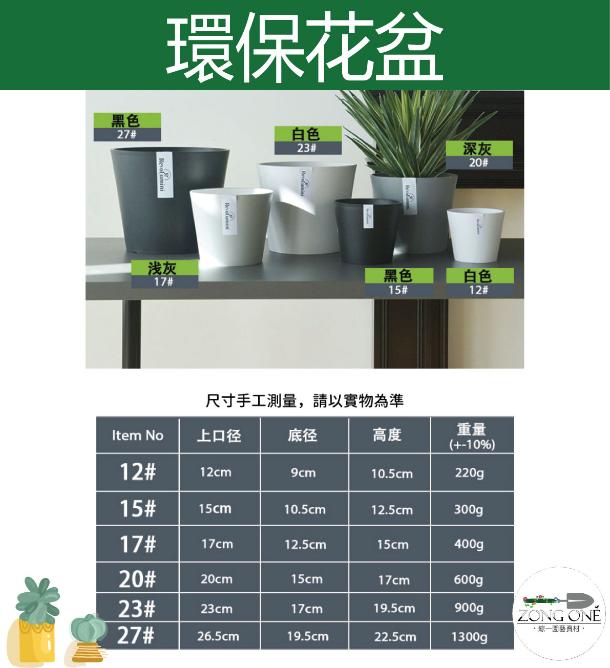 【滿額免運】環保花盆 (附底盤) 白/灰/黑 加厚花盆 輕奢花盆 塑膠花盆 花盆 盆器 多肉花盆 接水盤 綜一園藝