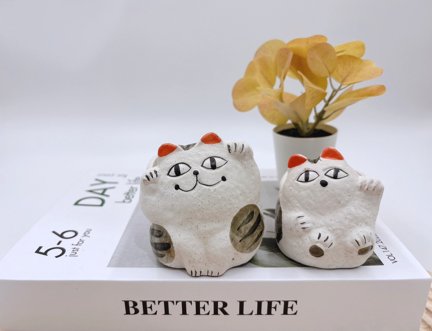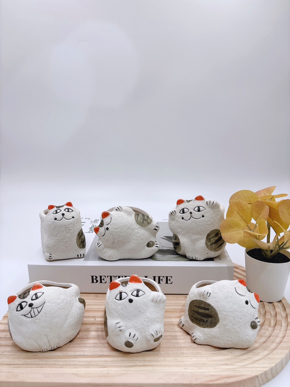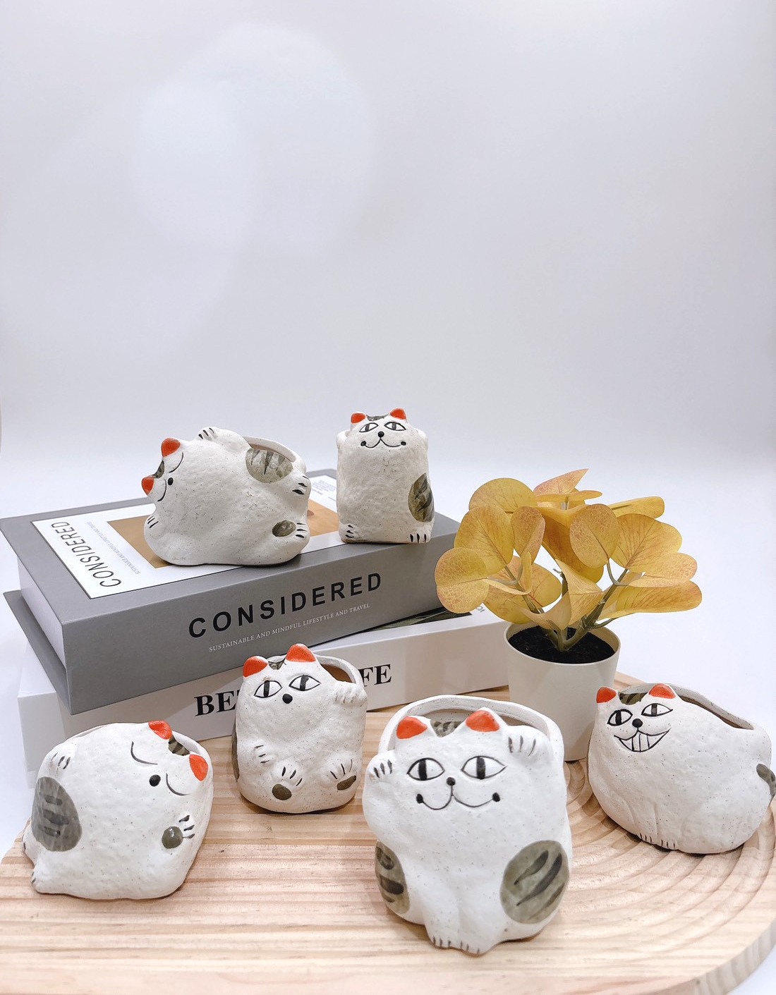 【滿額免運】迷你慵懶貓 可愛風 生活家飾 陶盆 蘭花盆 多肉花盆 仙人掌花盆 陶瓷花盆 小盆栽 盆器 綜一園藝