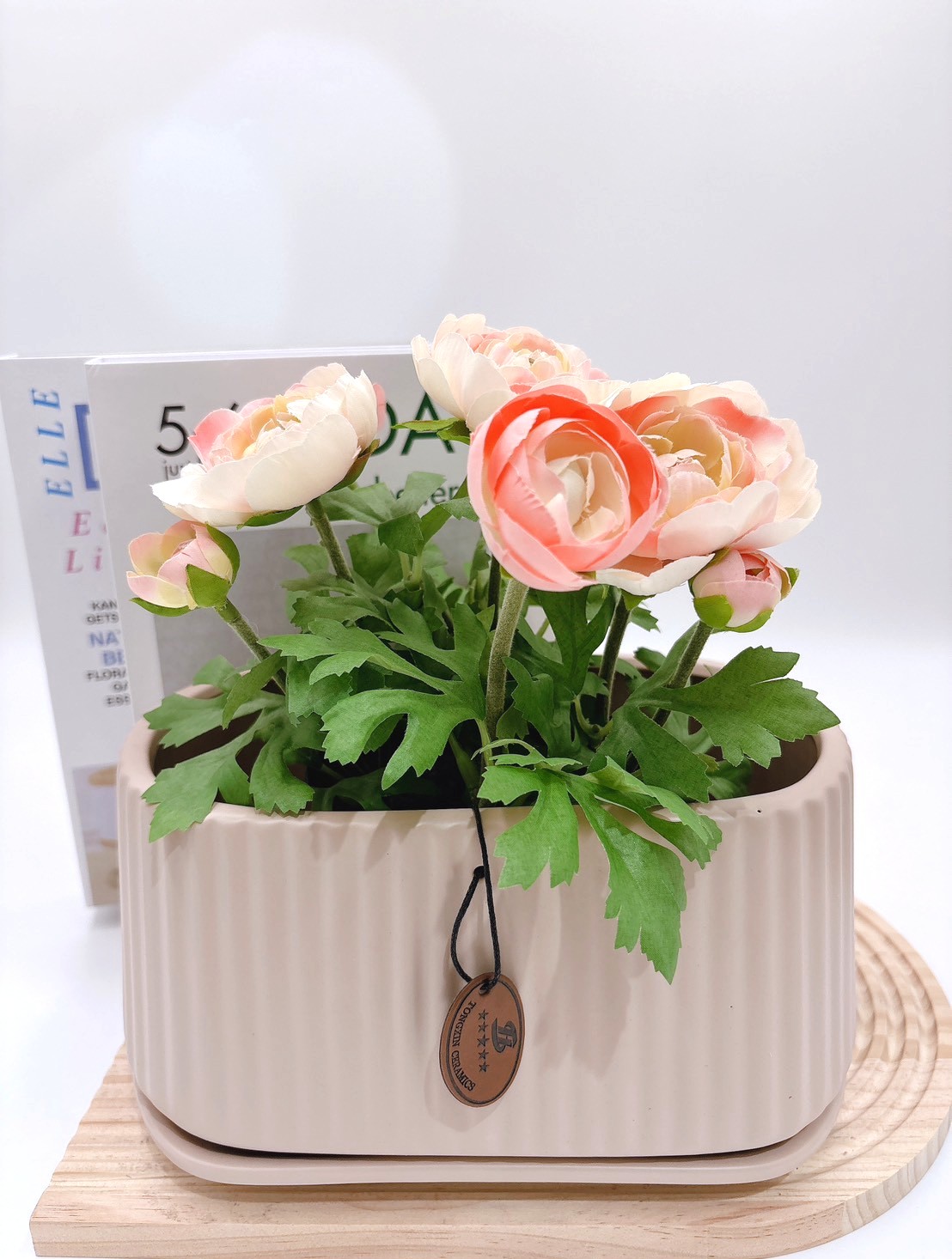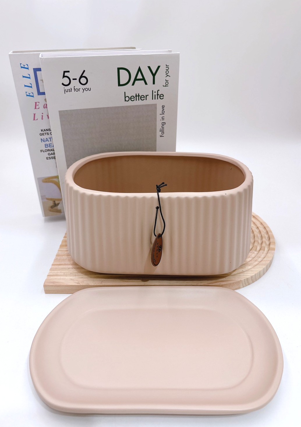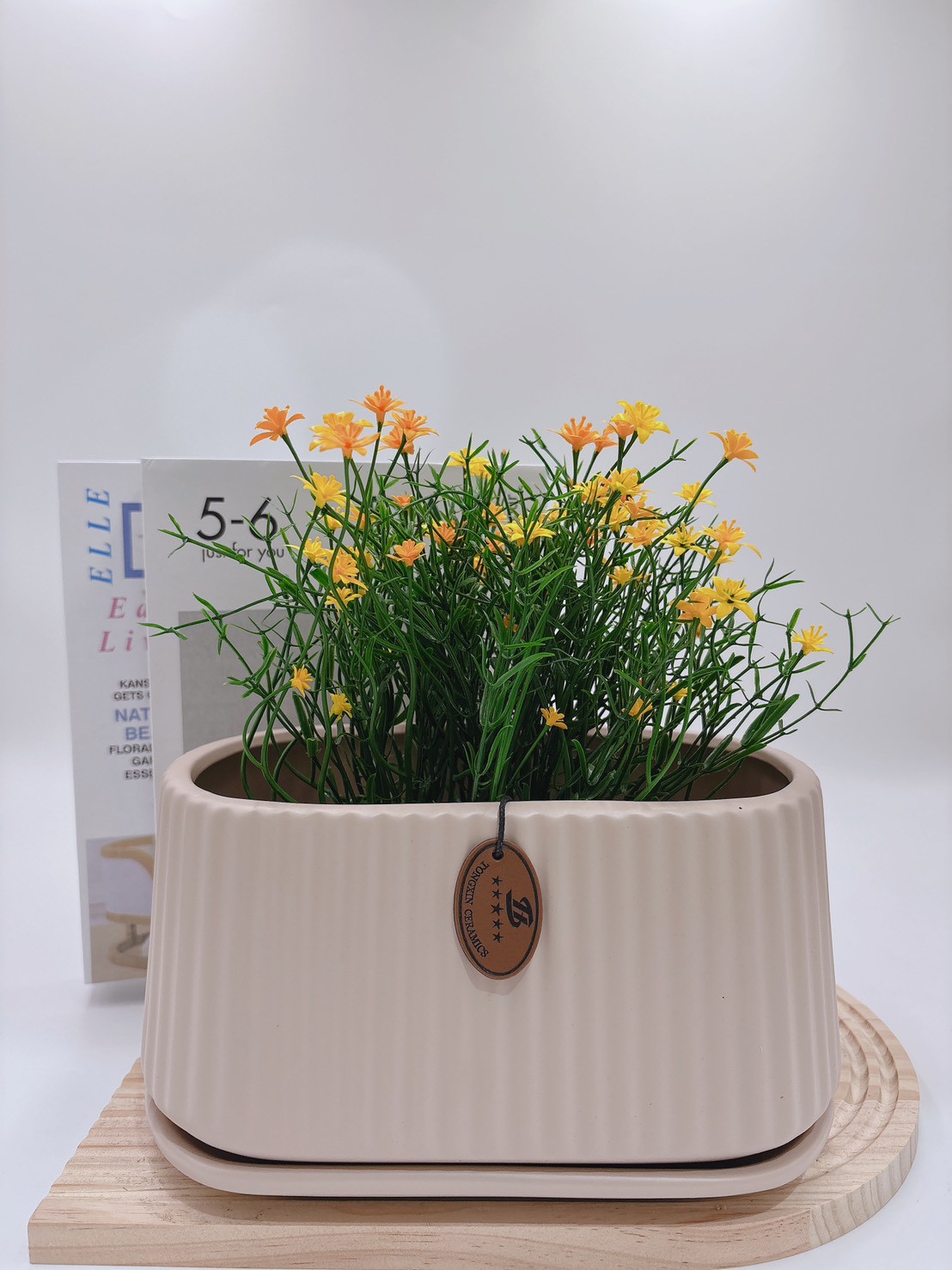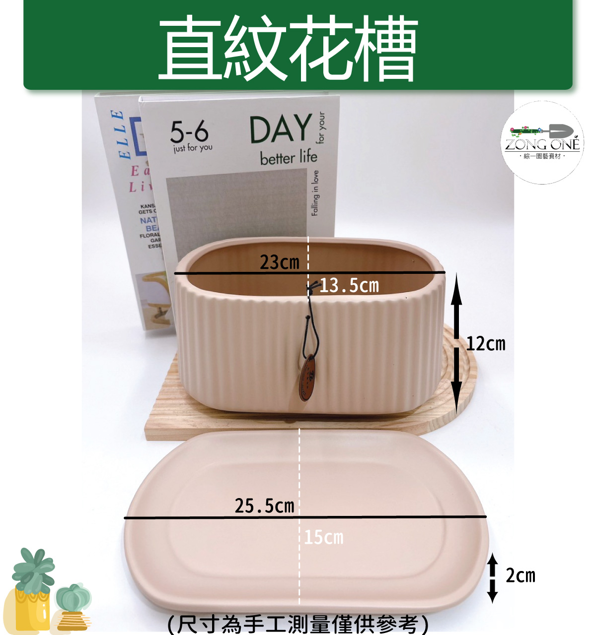 【滿額免運】直紋花槽盆 簡約風 附底盤 生活家飾 陶盆 蘭花盆 多肉花盆 仙人掌花盆 陶瓷花盆 小盆栽 盆器 綜一園藝