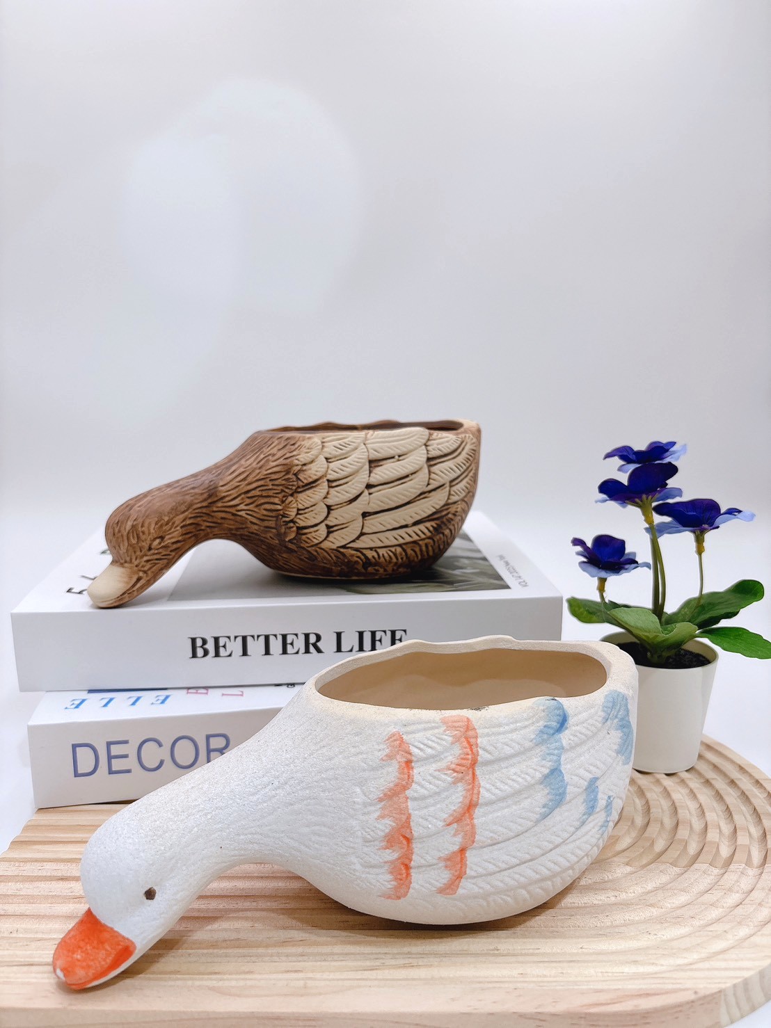 【滿額免運】鴨子 花盆 鄉村風 生活家飾 陶盆 蘭花盆 多肉花盆 仙人掌花盆 陶瓷花盆 小盆栽 盆器 綜一園藝