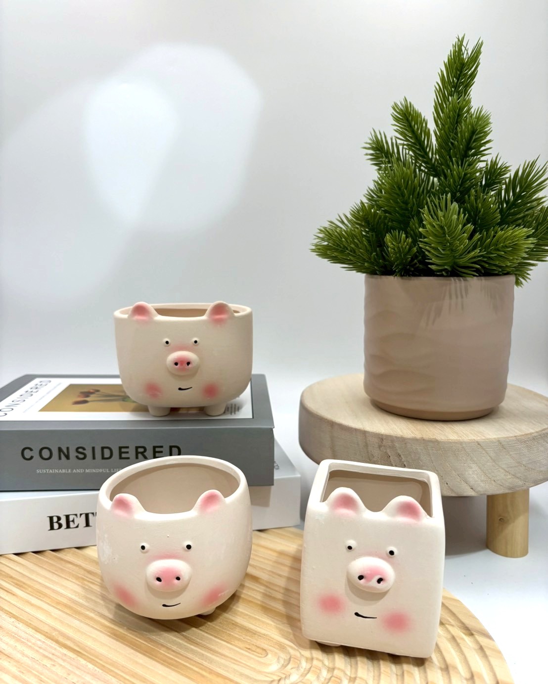 【滿額免運】小豬花盆 可愛造型 3款 陶盆 蘭花盆 多肉花盆 仙人掌花盆 陶瓷花盆 小盆栽 盆器 仙人掌 綜一園藝