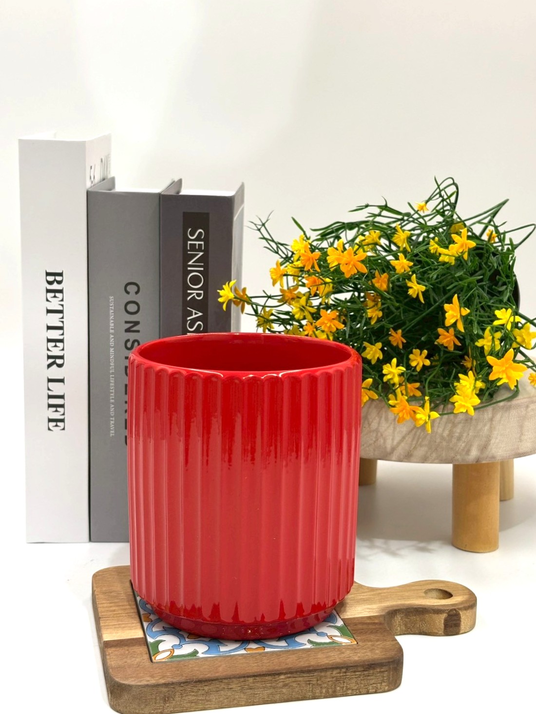 【滿額免運】紅序高筒盆 質感紅 高筒盆 生活家飾 陶盆 蘭花盆 多肉花盆 仙人掌花盆 陶瓷花盆 小盆栽 盆器 綜一園藝