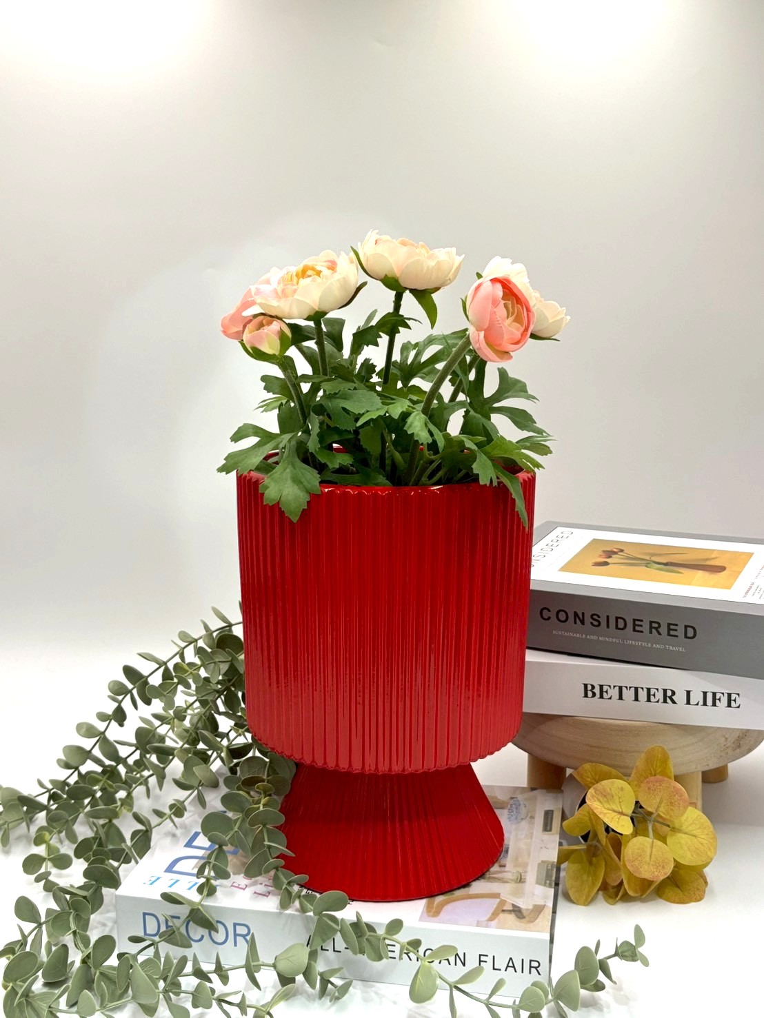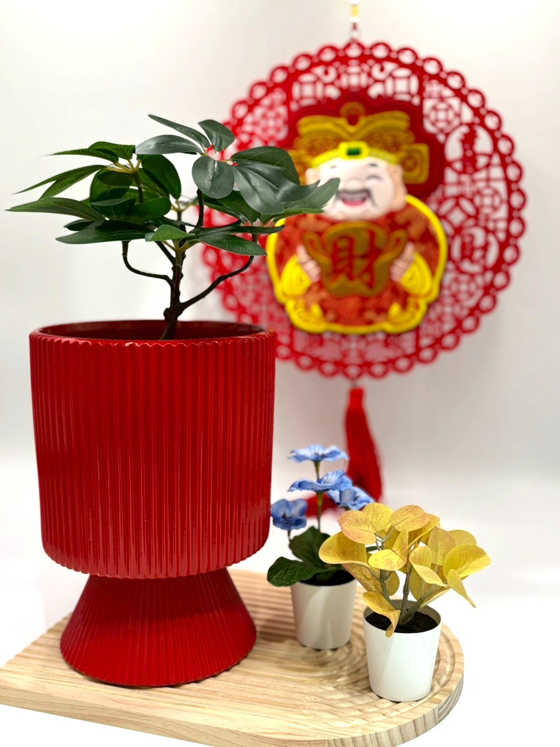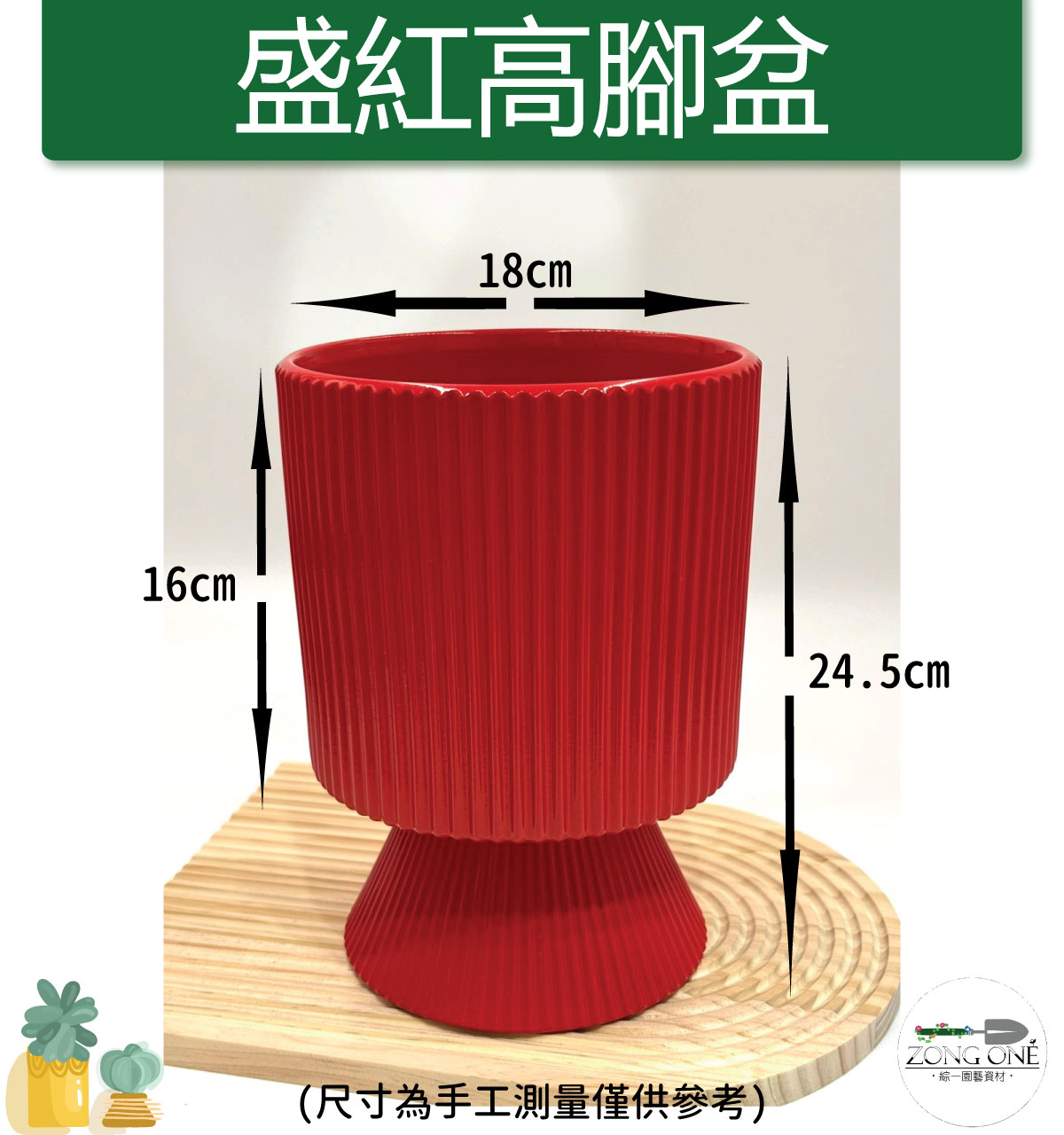 【滿額免運】盛紅高腳盆 新年盆 超喜氣 陶盆 蘭花盆 多肉花盆 仙人掌花盆 陶瓷花盆 質感盆栽 盆器 仙人掌 綜一園藝