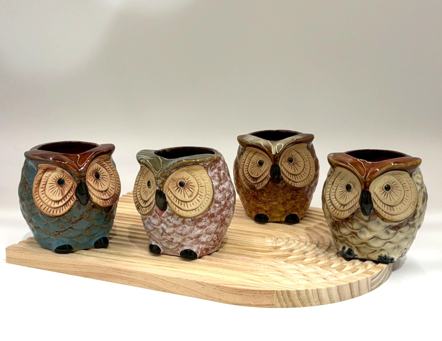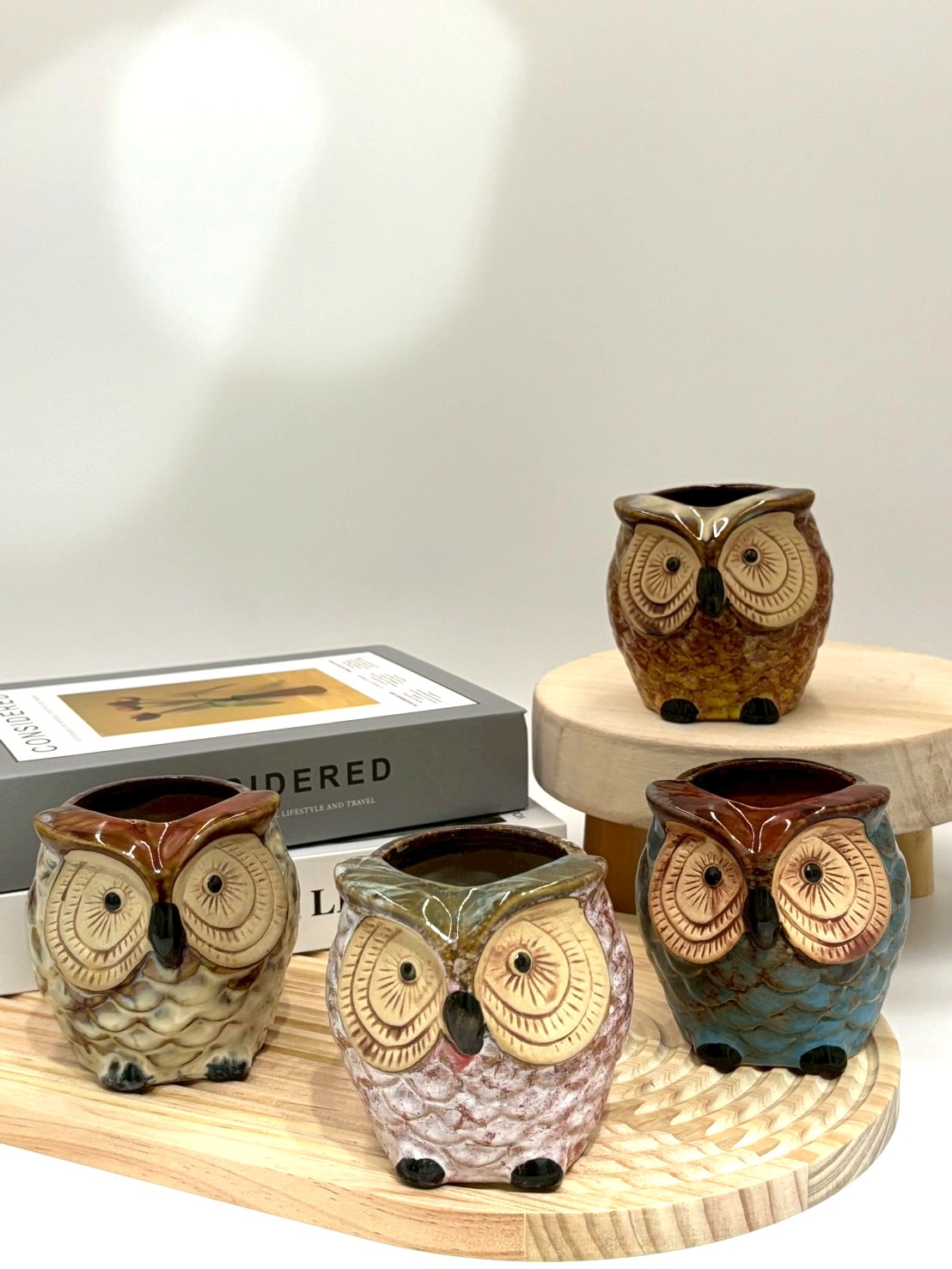 【滿額免運】貓頭鷹盆 可愛貓頭鷹 流釉 陶盆 蘭花盆 多肉花盆 仙人掌花盆 陶瓷花盆 小盆栽 盆器 仙人掌 綜一園藝