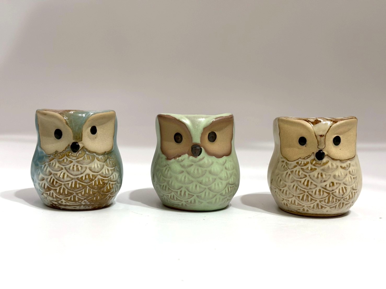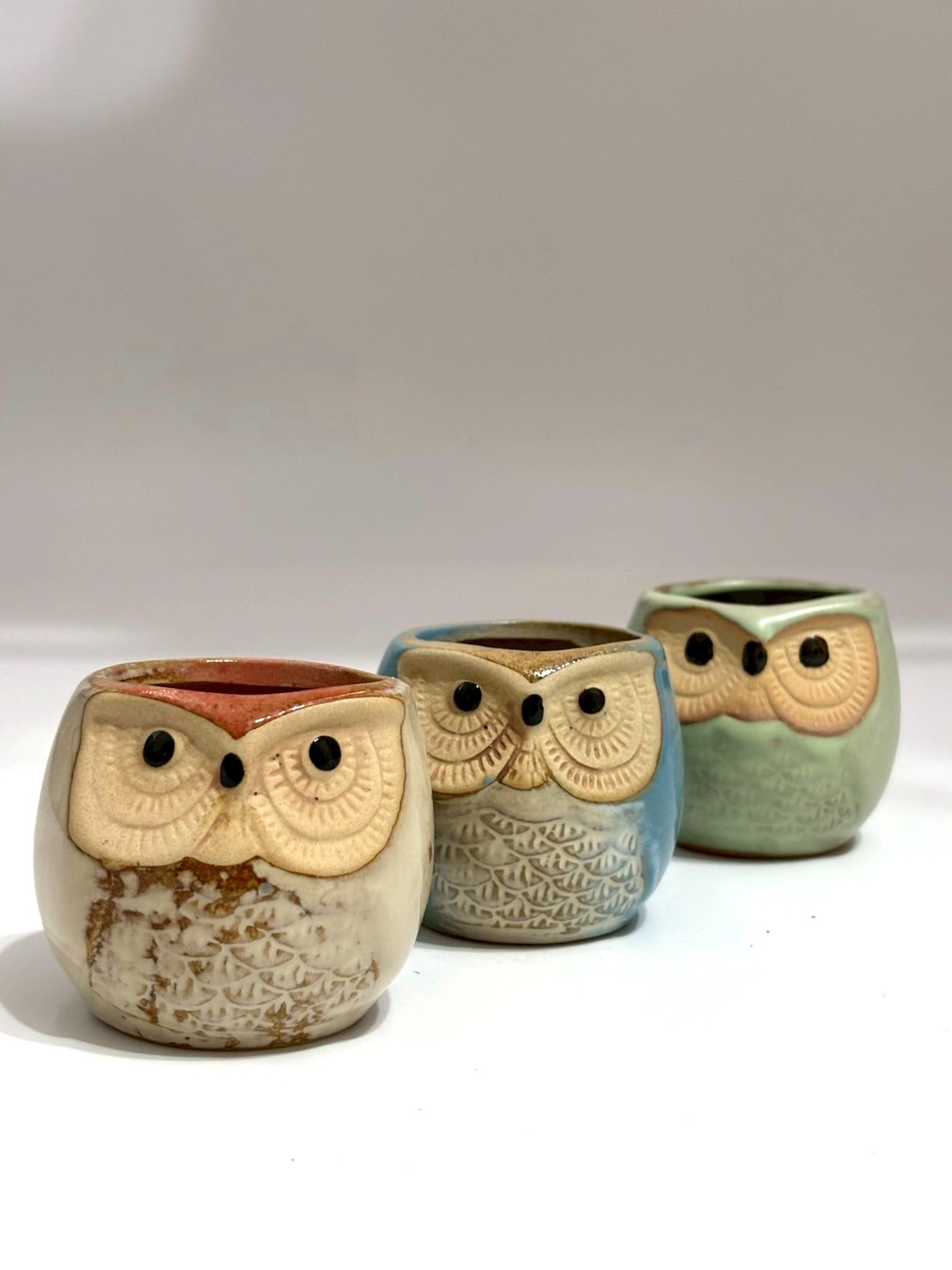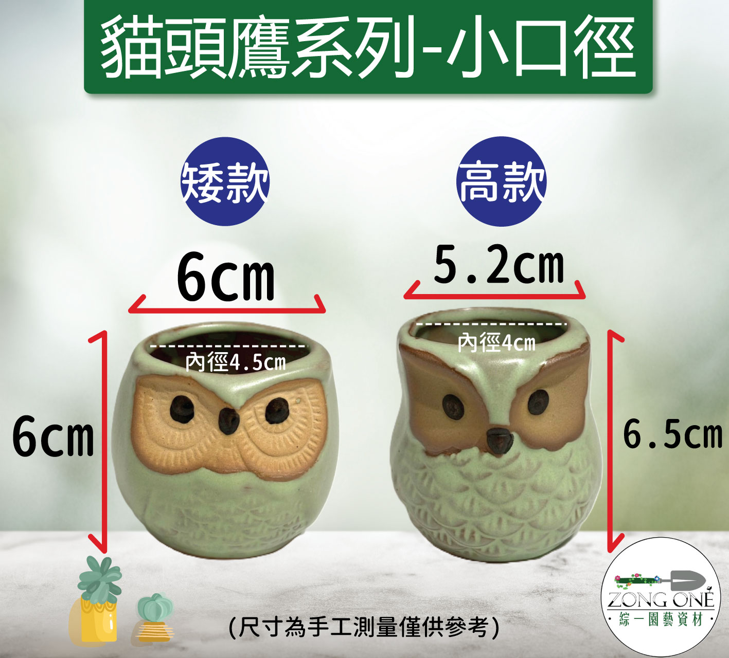 【滿額免運】貓頭鷹系列 小口徑 可愛動物 隨機出貨 陶瓷盆 有排水孔 瓷盆 花盆 浮雕盆 多肉 花卉 盆器