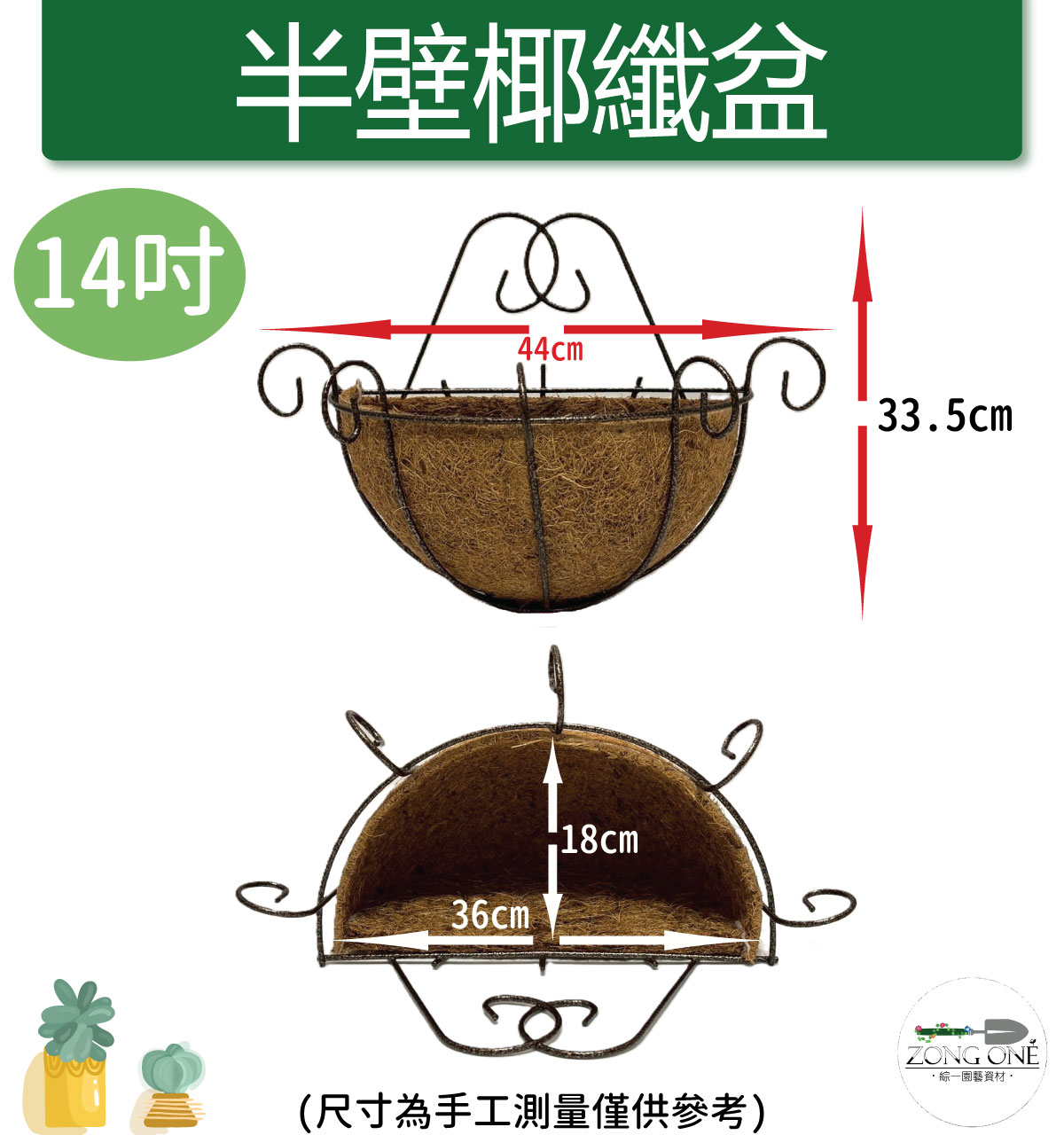 【滿額免運】半壁椰纖盆組 14寸 台灣製 椰纖內盆 椰纖半壁 椰纖壁盆 椰纖吊盆 椰纖吊盆 吊盆 吊籃 歐式壁盆
