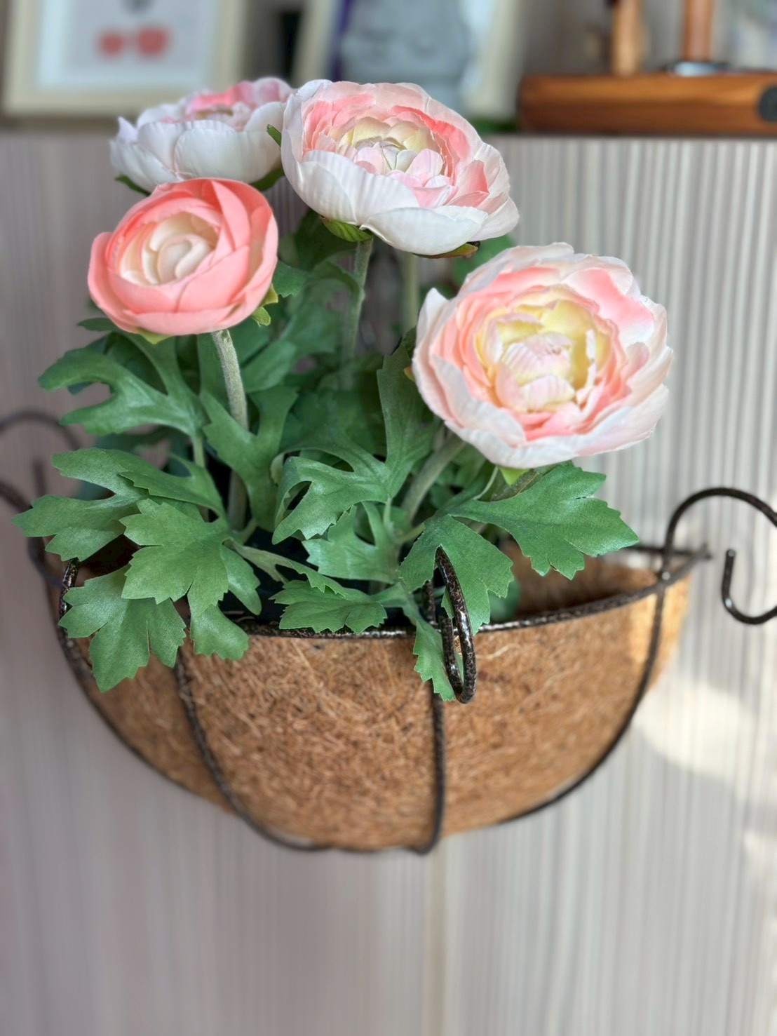 本組含*硬質椰纖盆(純天然椰纖高壓製成, 可持續更換)、*壁掛花架(金屬 古銅色防銹烤漆)
