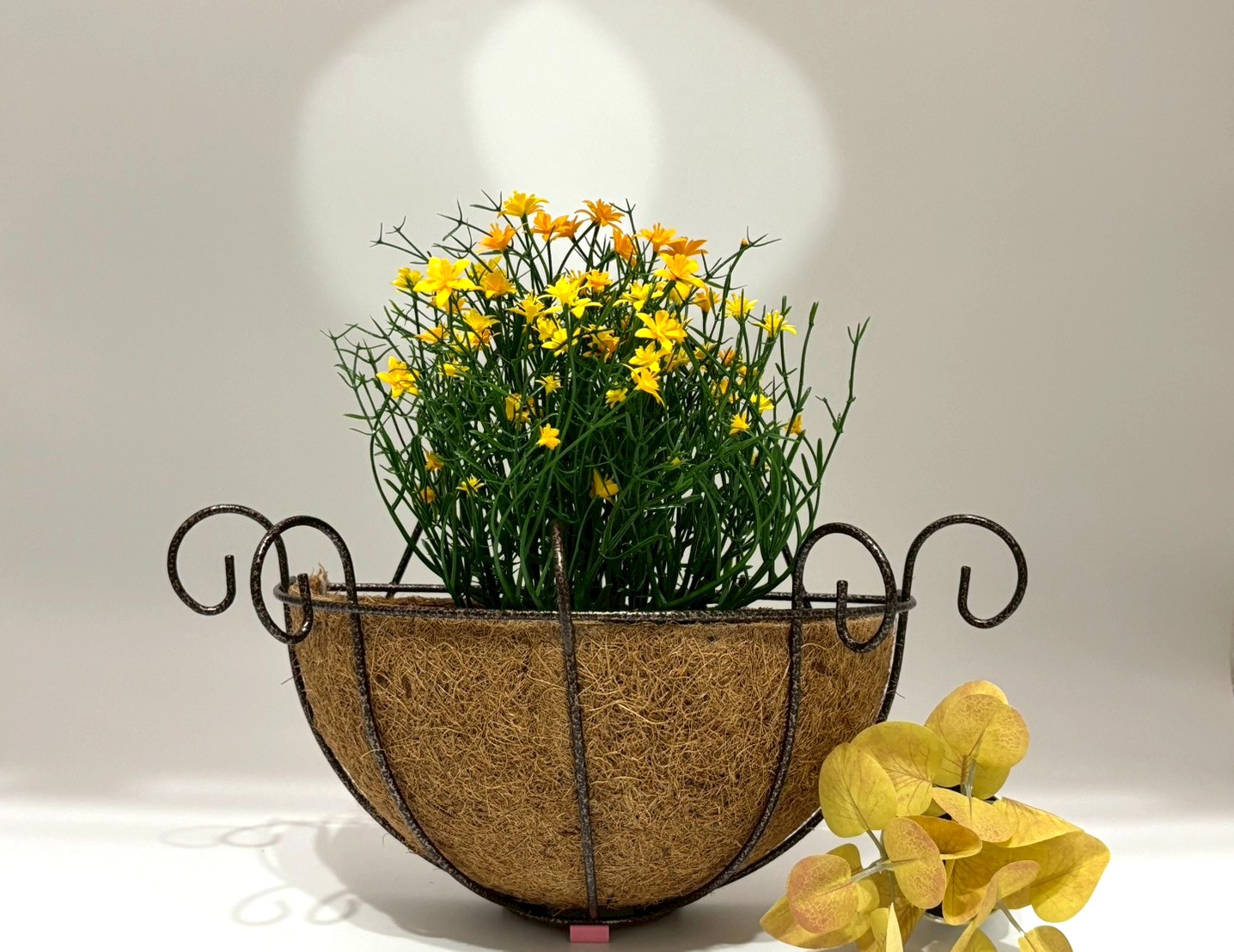 ● 花盆採用天然椰纖經高壓製成,全盆透氣佳排水性佳,可提供植物最佳的生長環境。歐式造型半壁掛架,適合栽種各種草花類和懸垂性植物,如長春藤、黃金葛等。