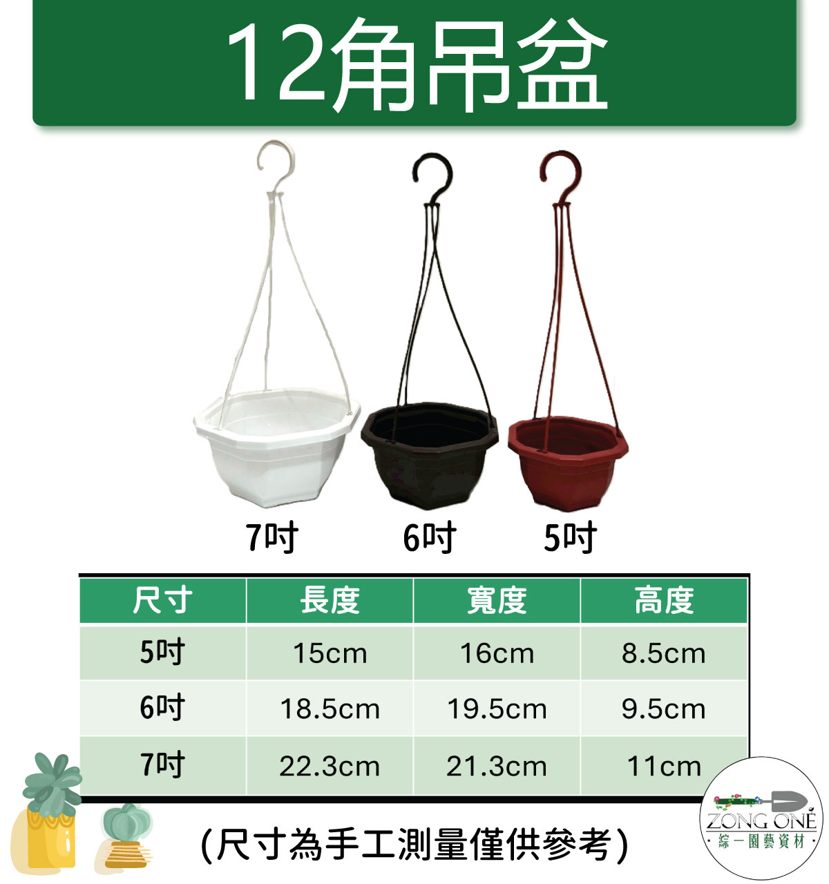 【滿額免運】12角吊盆 5吋 6吋 7吋 (含掛勾) 台灣製 塑膠花盆 植物吊盆 掛勾盆 壁掛盆 掛盆 吊盆 吊掛盆