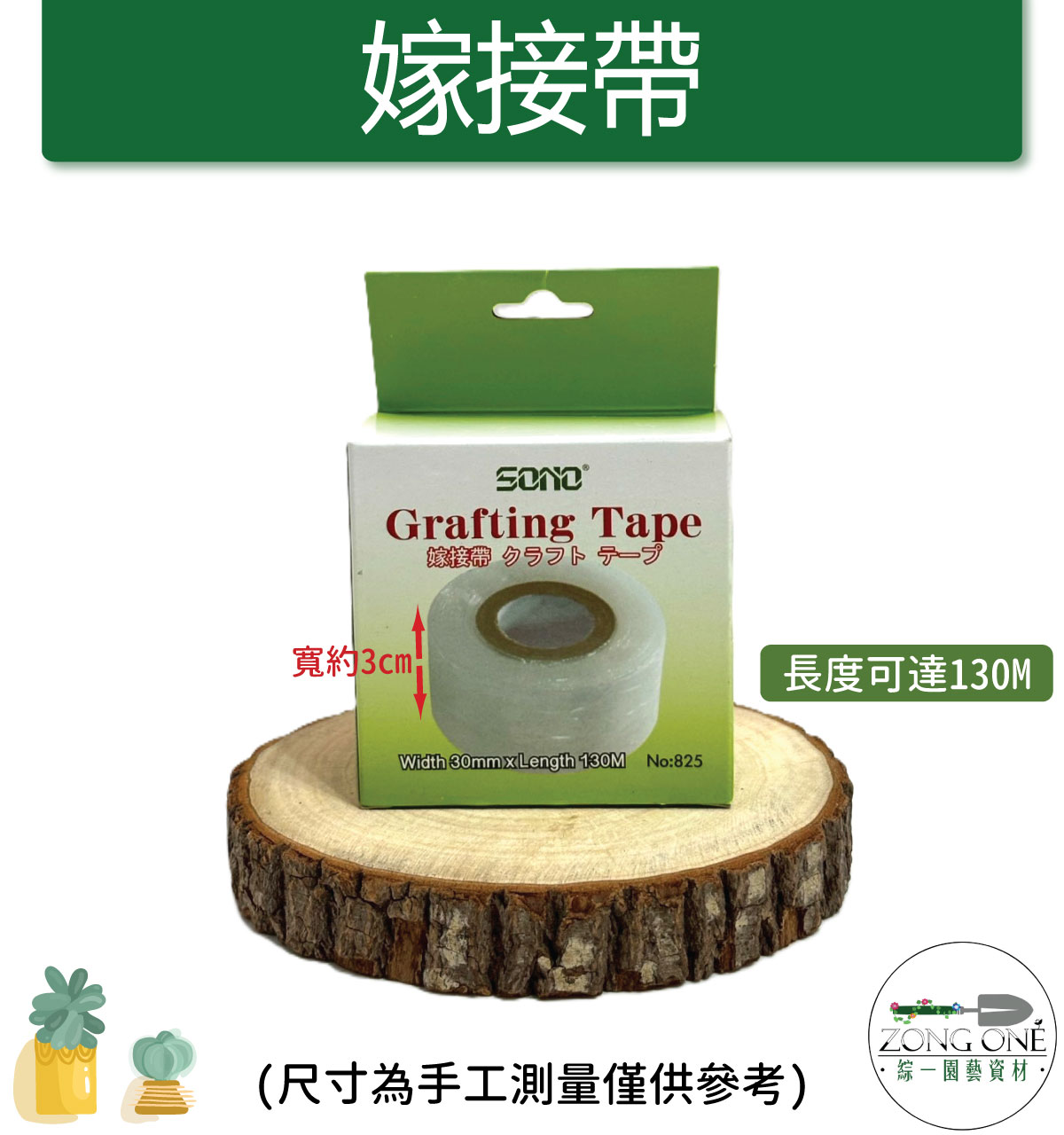 嫁接帶:寬約3公分 長度可達130m (尺寸為手工測量僅供參考)