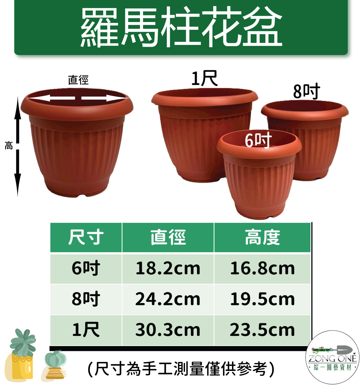 【滿額免運】羅馬柱花盆 6吋 8吋 1尺 台灣製 圓形花盆 圓盆 花盆 羅馬柱 樹木盆 花卉盆 觀葉植物 綜一園藝