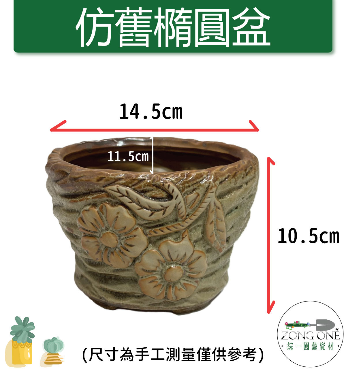 【滿額免運】仿舊橢圓花盆 復古風 仿舊風 園藝植栽 小陶盆 仙人掌 多肉花器 陶瓷 多肉陶盆 蘭花盆 綜一園藝