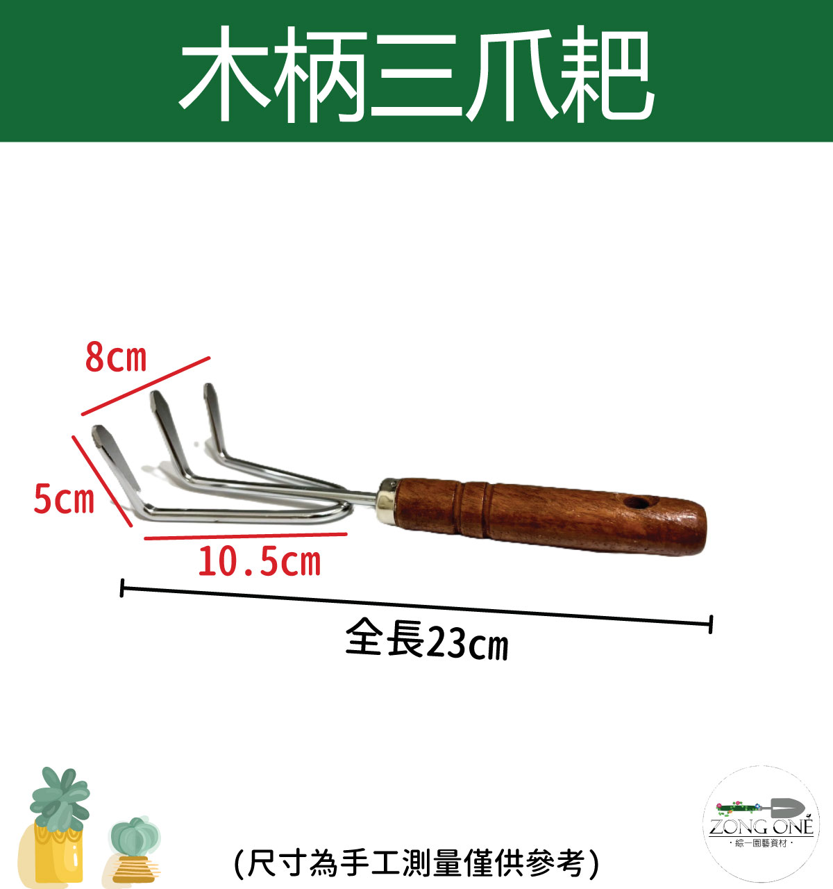 【滿額免運】木柄三爪耙 23公分 台製品質 除草耙 翻土耙 耙子 清理雜草 種菜畫條溝穴 綜一園藝