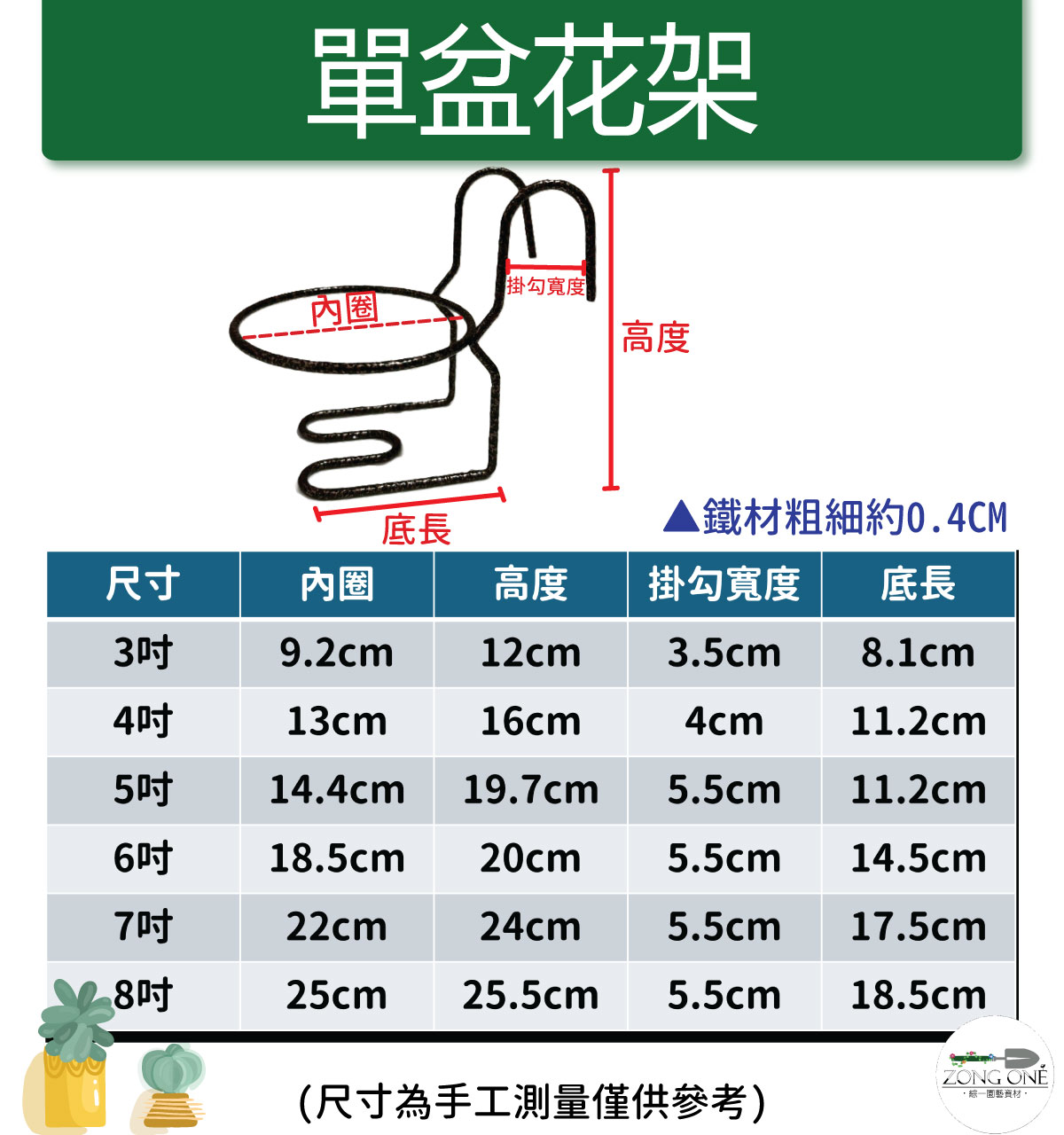 【滿額免運】單盆花架 圓盆專用陽台花架 多種尺寸 不含花盆 迷你鐵窗掛鉤 掛架 圓盆花架 陽台花架 鐵窗 綜一園藝