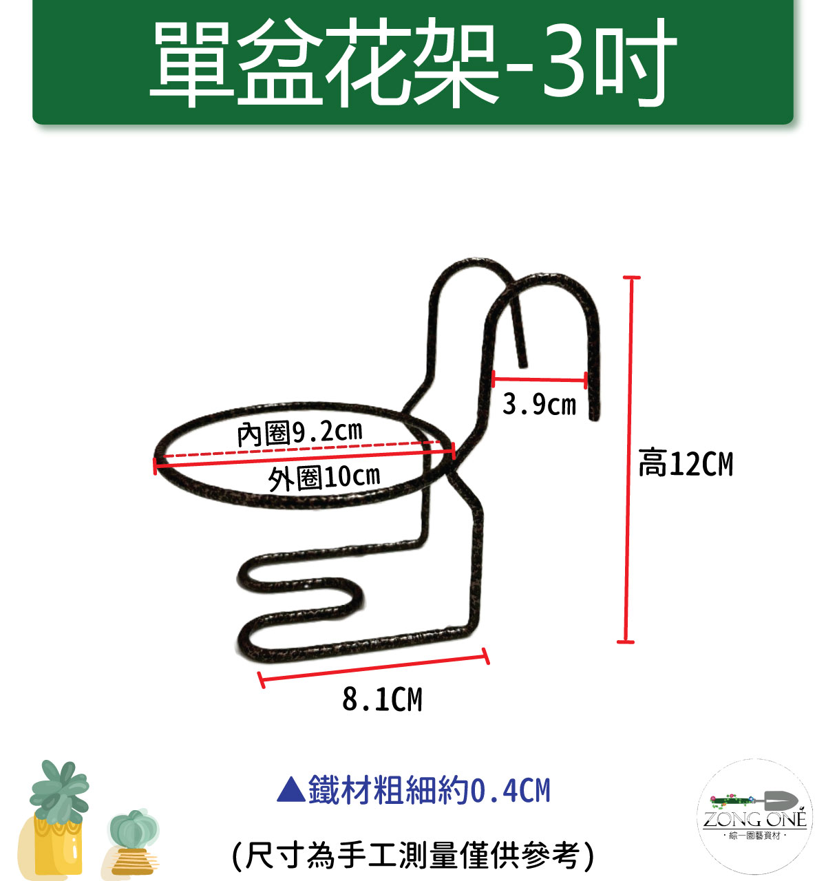 【單盆花架】3吋