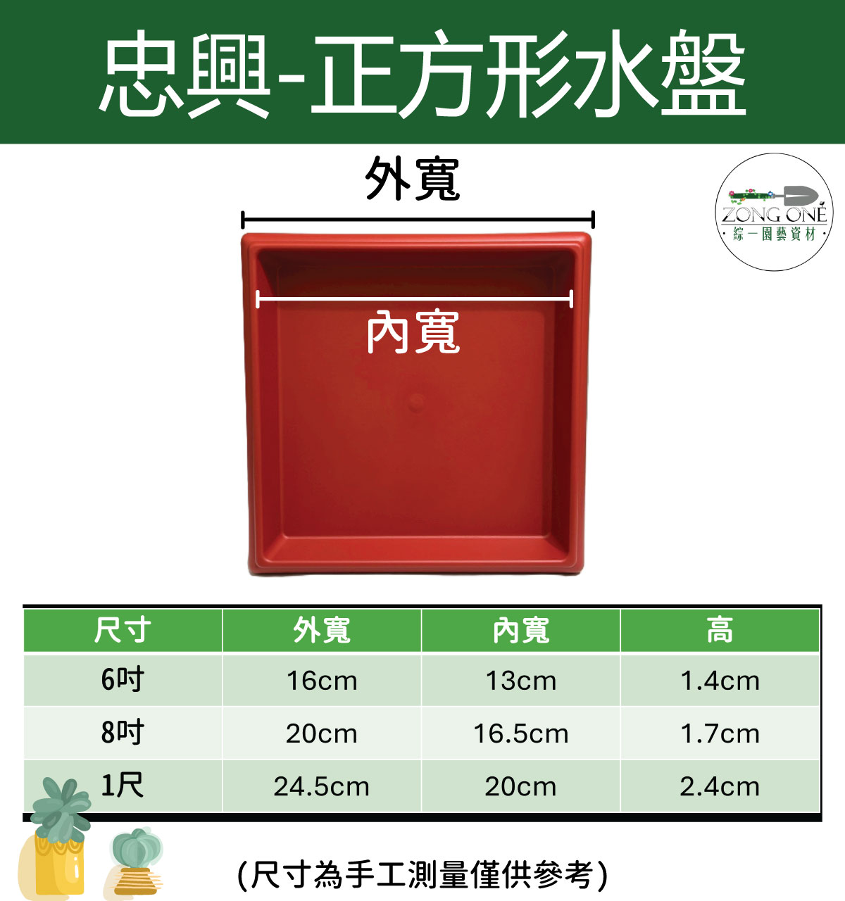 【滿額免運】水盤 正方形盆專用 6吋/8吋/1尺 水盤 方形水盤 底盤 接水盤 集水盤 盆器底盤 儲水盤 排水托盤